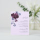 Kortet i bröllop innehåller en vattenfärgad bukett av plumpeonier för lila och indigo blåa blommor med snyggt för kalligrafi på lavendelbakgrund. Om du vill ha en mer avancerad anpassning av den här designen klickar du på UTTON VERKTYG. Matchande objekt är också tillgängliga.