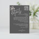 Vi presenterar vårt bröllop-kort för detaljer i anpassadet, designat för det moderna paret som vill ha elegans och enkelhet. Det här snyggt utformade kortet har ett rent, sofistikerat utseende som ger ett utrymme för ditt eget favoritpar. Kanske från förlovningen eller ett foto av platsen. Ett romantiskt och personligt kort med elegant modern skripttext i vit text på mörkens grått-bakgrund, en tidlös design. Du kan lägga till en personlig QR-kod för dina gäster för att söka igenom och dirigera dem till webbadressen för bröllop så att dina gäster får all information de behöver på ett och samma ställe.