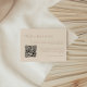 Ett enkelt och modernt beige bröllop-informationskort, designat med skriptbokstäver, och en QR-kod för webbplatsen bröllop. Anpassa med all din framtida information om bröllop.