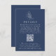 Designat att samordna med vår Elegant Botanical Måne och Stars bröllop-samling, innehåller detta kort för QR-kod bröllop en vit linjekonst som illustrerar en måne med stjärnor och löv på en marin bakgrund. Anpassa informationskortet för flottan i bröllop med viktig information som hotellrum, transport, mottagningsinformation, bröllop webbplats med mera! Lägg till webbplatsen bröllop i QR-koden för att dirigera gäster till webbplatsen för bröllop till OSA eller få mer information om det kommande bröllop.