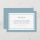 Det här moderna klassiska bröllop-detaljkortet har en redigerbar bakgrund färg. Om du vill ändra det från dammigt blått till valfri färg klickar du på anpassningsknappen och ändrar både fram- och bakbakbakgrunden till färg. Se andra matchande bröllop-objekt här https://www.zazzle.com/collections/editable_color_classic_round_monogram_wedding_1-119000260232212352?rf=238364477188679314&tc=rc . Anpassa den genom att ersätta platshållartexten. Om du vill ha fler alternativ, t.ex. att ändra teckensnitt, är det storlekt och mellanrummet mellan brev klickar du på knappen "Anpassa". *Observera att Zazzle Watermark som visas i zoomförhandsvisningen INTE visas på den färdiga tryckta produkten. © Rosewood and Citrus