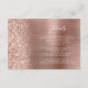 Den här eleganten har ett kort med nyare bröllop-detaljer med en bakgrundsbild i ro guld som har sprinklats i metall med faux diamant glitter. Anpassa den vita texten med titeln "Information" i handskriftsskript för snyggt och den återstående texten i sans serif-teckensnitt. Baksidan har en passande utformning av metall och faux glitter med borstat ro guld.