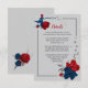 Kortet Röda och marinerade blåa blommor med silver löv-detaljerat hölje Uppgifter om glitter simuleras