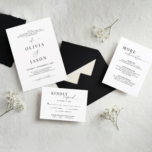 Modern Romantic Script Black and White WeddingDesignad av Vivian M