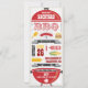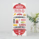 Ett rött vattenväggsgrill med lätt skogskornbakgrund. Denna roligt barbeque party inbjudan dekoreras med bannrar, senap och ketchup-flaskor, hovhund på gaffel, papprare tallrik, gaffel & knivar, hamburger, maj och kycklingben. Kortets baksida är dekorerad med en söt gingham mönster. Anpassa med din egen text. Ursprunglig illustration efter pj_design / jammydesign.