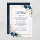 Den vackra blommigten boho, den moderna bröllop-detaljkortet, har handmålad blommigt med vattenfärg/ro i rik av marinblått och rosa med guld ram. Kontakta mig om du behöver hjälp med anpassning eller om du behöver någon annan produkt med den här designen.