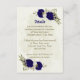 Vackert romantiskt bröllopsmottagningskort med royal blå och beige blommor och vissa löv. OM DU VILL HA MER MATCHING PRODUCTS klickar du på samlingen ovan eller kontaktar mig