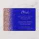 Det lämnar kanten i eleganten har ett kort för modern detaljrikedom i bröllop som har utformats för ro faux glitter i guld. Anpassadet kombinerar handskrift, rityta och kursivt typsnitt med blek ro färgad mot royalets blå bakgrund. Den omvända sidan har en passande utformning av royalet blue och ro guld glitter.