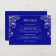 Det här royalet med blå bröllop-detaljkort för elegant är det idealiska valet att lägga till information för att hjälpa dina gäster. Lägg till information om reserverad logi, transport och bröllop webbplats. Med en dekorativ snurra mönster är det ett tillägg till din inbjudningssvit i snyggten. Detta är en del av vår samling av italienska Baroque-inspirerade konstruktioner för bröllop. Ta ett ögonblick och bläddra mer i samlingen.