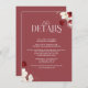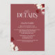 Ett vackert designat informationskort som all viktig information med dina gäster. Stylt med ruby-röd ros och mjuka vita blommigtar för att matcha bröllop-sviten. Perfekt för att inkludera platsuppgifter, adresskod, anvisningar med mera - allt på ett elegant-kort.