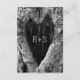 Elegant bröllop-kort med uppgifter om modern typografi mot bakgrund av den rustiska fågelbarken. Vänd kortet över för att visa ett vackert hjärta och lägg till briden och triomens monogram på baksidan av kortet.