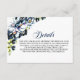 Ett kort med information om bröllop-blommigt-blå grått-detaljer som ska ingå i din inbjudan till alla viktiga extra-detaljer som dina gäster kan behöva för att se till att din speciella dag i springa fungerar smidigt.