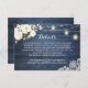 Informationskort för Rustic Blue Wood White Blommigt Snöre Bröllop. Information om String Ljus för String Burk i Rustic Wood Mason Infoga kort