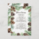 Kortet Rustic Gräs Cone Fir Grenar Winter bröllopsinformation med Monogram på bak