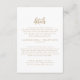 Det här bröllop-detaljkortet för det roustiska guld-skriptet är perfekt för ett landsbyggsbröllop. Den enkla och moderna designen guld och vitt har en unik, handskriven kalligrafiskrift med en contemporary minimalistisk boho stil. Anpassade i alla färg. Behålla designen minimal och förenklad, eller anpassa den genom att lägga till egna bilder och teckningar.