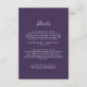 Kortet för detaljförslutning för plumplommon bröllop är perfekt för en boho bröllop. Den eleganterna, men ändå strålande utformningen har en moody lila av mörken med en modern bohemisk trädgårdskänsla. Samordnar med Rustic Lavender Collection by Fresh & Yummy Paperie.