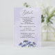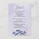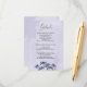 Temapartynas söt bröllop-detaljritning med -kort har söt periwinkle/blue daisys bouquet set på en pastelllavender-bakgrund med vita vattenfärgrutor. Ta med information om mottagningar, mottagningsinformation och information om farewell-händelser här. #WeddingDetails #RusticWedding #PurpleDaisies