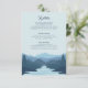 Den här enkla, minimalistiska och moderna bröllop-utformningen har ett modernt typsnitt mot ett blått, mistigt bergslandskap. Du kan anpassa detta ytterligare genom att klicka på knappen "PERSONALIZE". Matcha artiklar i vår butik för ett helt tema i party.