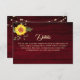 Ange tonen för din speciella dag med vårt elegant land boho bröllop-kort för detaljer. Det här kortet har rustik lada och rik burgundy och är försett med en charmig solros och ett enkelt kalligrafi-skript som ger en förfinad men nedåtriktad beröring.