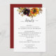 Rustik Modern Solros Burgundy Röd ros Blommigt Watercolor Höstblommans bröllopshögkvarterskort
