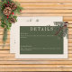 Vi presenterar vårt fantastiska kort för vinterbröllopsinformation, där tidlös elegans möter säsongens skönhet. Rikens krämbakgrund, som är artificiellt plågad med mjuka vita accenter, anger en fängslande ton för din speciella dag. I textområdet mörk sage grönt visas dina uppgifter om bröllop, omgivna av en känslig ljusskena grönt ram som tillför en liten förfining. Förbered vintern med en brinnande vindruta av lush grey, som är fylld med rik röda bär, mistletoe med dess ömtåliga vita bär och den tidlösa gallringen av grönt gräs. Den här vintern fångas säsongens innersta väsen av underjordsininspirerad design, och dina gäster inbjudningarna att fira kärlek i en miljö där man utstrålar naturlig ära och festlig charm. Med den här designen kan du säkert ställa in scenen för ett firande fyllt med kärlek och glädje. Förbered vintern och låt bröllop vara en återspegling av den skönhet som denna säsong ger. Det är en del av Rustic Winter Berries & Gräs Cream bröllop svit. Skapat av Farmhouse Press.