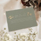 Ge gästerna viktig information med det här detaljkortet för elegant grönt bröllop. Med mjuk beige och guld-blommigt och förfinad kalligrafi är det perfekten för att dela din webbplats, anvisningar, platser med mera.