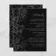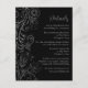 Kortet för information om elegant bröllop kan anpassas med viktig information till dina gäster, t.ex. bröllopsmottagning, hotellrum, transport, anvisningar, klänning, resväg, register och annat. Utformningen har en delikat blommigt för prydnadsmönster med blommor, fåglar och löv på silver och svart bakgrund. Texten kombinerar handskript och serif typsnitt för en snyggt och ett modernt utseende.