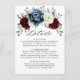 Slate, Burgundy, White ivory themed blommigt bröllop-kort med uppgifter om elegant buquet av burgundy, skiffer, dammiga blått, elfenben ro och peonblommor och dammig grönt eukalyptus löv. Kontakta mig om du behöver hjälp med anpassning eller någon annan produkt
