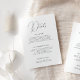 Klassiskt svartvitt får en modern snopp med det här detaljkortet för bröllop. Sofistikerad kalligrafi tillför en aning personlighet, medan tydliga avsnitt för transport och logi garanterar att dina gäster kommer och får redo att fira. Det här snyggt-kortet är perfekten för att ge bröllopsdagen de viktigaste detaljerna.