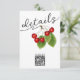 Det här dubbla-sidiga chicen-kortet har en strålande utformning med röda körsbär av vintage och löv av grönt på framsidan, som ställs in mot en vit bakgrund. På framsidan visas även sofistikerad svart kalligrafi som läser "Information" och en modern QR-kod som gör det möjligt för gäster att enkelt få tillgång till bröllop webbplats. På motsatt sida skrivs detaljerna i ett enkelt klassiskt vitt skript på en romantisk röd bakgrund. All text, inklusive den skannade QR-koden, är helt anpassade - ersätt den med din egen eller ta bort onödig information. Utforska vår insamling av Cherry Bröllop för att samordna produkter som skapar sammanhållning och snyggt leta efter ditt evenemang. Perfekt för en personlig och en minnesvärd upplevelse av bröllop!