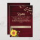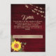 Elegant, modernt bröllop-träburgundkort för rustiska träslag med webbplats, solros, guld-gyldad blommigt snöre och sträng ljus.