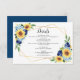 Det här moderna bröllop-kortet har en vattenfärgsdesign med blommigt med solblommor, dammiga blå vattenområden, ro och ett faux guld-geometriskt ram. Anpassa den med texten. Matchningsprodukter finns också tillgängliga.