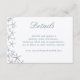 Bröllop-kort med stjärnfisk gräns. Texten är ljusblå och visas på den uppgraderade champagneshimmer papper. Ljusblåa och grått-havstjärnorna faller ner i den lämnat kant av små inkapslingskort som har storlekt urval.