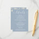 Ett elegant dammigt blått bröllop-informationskort med söt sträng ljus. Anpassa med din speciella information som är angiven i snyggt typografi och ditt namn och bröllop datum i motsatt riktning. Designad av Thisisnotme©