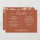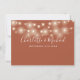 Ett elegant terracotta bröllop innehåller ett informationskort för bilaga med söt sträng ljus. Anpassa med din speciella händelseinformation som är angiven i snyggt typografi med namn och bröllop datum på motsatt sida. Designad av Thisisnotme©