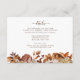 Öka möhippan med "Fall in Kärlek Autumn Möhippa Card Collection". Det här detaljkortet har en samordnande taupe mönster på baksidan, som perfekt kompletterar de handmålade löven, dahlierna och ro i vibranta fall på framsidan. Den kohesiva designen ser till att din händelse utstrålar värme och charm. Skapa en oförglömlig firande av kärlek och skönhet, och fånga höstens innersta väsen.