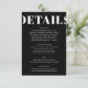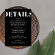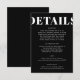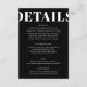 Tittar du ett elegant, ett modernt bröllop-detaljkort? Titta på vårt kort för svart och vitt, enkelt och modernt hölje för detaljer i Bröllop. Med fet kalligrafi som tillför lite sofistikering ger det här svarta och vita detaljkortet för bröllop ett rent, enkelt utseende. Detta minimalistiskt detaljkort för bröllop har en modern tvist som är bunden att fånga dem med öga för subtil sofistikering.