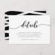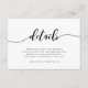 Snyggt Bröllop-informationskort med "detaljer" om ord i ett slappt kursivt skript i svart mot vit bakgrund. Kortet har en svart baksida med överlappande vitt linjer. Anpassa den genom att ersätta platshållartexten. Om du vill ha fler alternativ som att ändra teckensnittet och det är storlekt/färg eller mellanrummet mellan brev klickar du på knappen "Anpassa". *Observera att Zazzle Watermark som visas i zoomförhandsvisningen INTE visas på den färdiga tryckta produkten. © Rosewood and Citrus