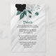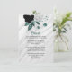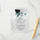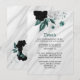 Elegant vit, svart och teal blåa blommor med teal löv på silver grått marble botaniska detaljer i djurutrymmeskort.