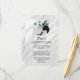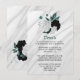Elegant vit, svart och teal blåa blommor med teal löv på silver grått marble botaniska detaljer i djurutrymmeskort.