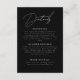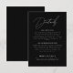 Specifikationskort för svart och vitt, minimalistiskt skript Bröllop