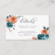 Blommigten för Teal Burnt Orange Bouquets Bröllop-detaljkopplingskort. Blommigt bröllop-detaljkort med handmålade vattenfärger i färgnyanser av teal grönt och bränd orange med modernt kalligrafi-skript. Fullständigt anpassade bröllop-informationskort. Lägg till uppgifter om bröllop, ändra typsnitt, placera blommorna och färg framför och bakom kortet.