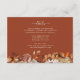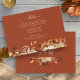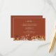 Specifikationskort för terracotta-hösten. Höj bröllop med det här fantastiska vågräts detaljförslutningskort med rik, handmålad vattenfärgsgrafik av bränd orange och terracotta löv, mjuk kräm och beige dahlias samt strålande koppar och rost-färgad ro. Med det här kortet tillför du en liten bit säsong-elegans mot en varm kopparbakgrund samtidigt som du sömlöst presenterar din händelseinformation. Se till att gästerna har all nödvändig information - anpassa kortet nu.