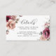 Specifikationskort för Terracotta Burgundy Fall Flowers Bröllop. Kort med uppgifter om blommigt bröllop med handmålade vattenfärgspennor och blommor i nyans terracotta och mersala burgundröd med modernt kalligrafskript. Fullständigt anpassade bröllop-informationskort. Lägg till uppgifter om bröllop, ändra typsnitt, placera blommorna och färg framför och bakom kortet.