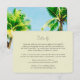 Ange tonen för ditt drömbadbröllop med vår fantastiska Elegant Tropical Beach Handflatan Träd Bröllop-informationskort i! Med en andningsfull digital vattenfärg i handflatan träd. Perfekt för strand-, kust-, nautiska- eller destinationslandningar. Genom att helt och hållet anpassade dig till kostym med dina unika bröllop-uppgifter ser det här bankinformationskortet till att din stora dag börjar med oförglömligt stil.