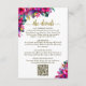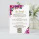 Det här vackra bröllop-kortet är designat för ge du behöver för spelar ingen roll uppgifter som dina gäster kan behöva, inklusive register, mottagning, resor, inkvartering osv. samt en QR-kod för anpassade som riktar dina gäster till webbplatsen för mer information. Kortet har en levande färgstark utformning med rosa hibiscus, grönt monstera löv och tropiska trädgårdsblommor och grönska. Titeln skrivs i skripttexten i elegant guld och lyder "informationen". Baksidan är en marmorerad magenta eller shock rosa med en bukett av samma blommor bunden med en vit satängbuk.