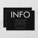 Denna fantastiska, rena och designade, moderna, minimala men ändå mycket lekande fet Namn & text-placering i Black and White för minimalistiskt stil, är dock anpassade till andra färg och ingår i en unik svit och samling av Phrosne Ras Design. Detta skulle vara underbart för dem som planerar en roligt svartvitt, med detta informationskort i bröllop som är djärvt och inspirerat av roligt-älskande människor som kärlek en bra party och som inte har något emot att avvika från traditionen.