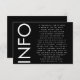 Denna fantastiska, rena och designade, moderna, minimala, men ändå mycket lekfull, fet monogram och textplacering i Black and White för ett minimalistiskt stil, är dock anpassade till andra färg och är en del av en unik svit och samling av Phrosne Ras Design. Detta skulle vara underbart för dem som planerar en roligt svartvitt, med detta informationskort i bröllop som är djärvt och inspirerat av roligt-älskande människor som kärlek en bra party och som inte har något emot att avvika från traditionen.