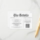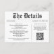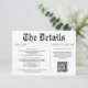 Se till att dina gäster har all viktig information för din stora dag med det här bröllop-kortet som är inspirerat av snyggten. Med titeln "Information" i ett klassiskt tidningspappersteckensnitt anger designen tydligt mottagnings-, inkvarterings- och reseinformation, kompletterad med en QR-kod för enkel åtkomst till din bröllop webbplats eller honungsmånfond. Den här organiserade och sammanhängande designen ger ett sofistikerat och praktiskt tillägg till ditt bröllop-kontorsprogram.