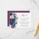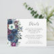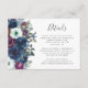 Den lämnat kant i denna elegant har ett kort för modern detaljrikedom i bröllop med en plommon- och marinblå blommigt arrangemang. Rubriken visas i handskriftsskript för kol-grått, med anpassade nedan i typsnittet på vit bakgrund. Den omvända sidan är ett samordnande fast plommon.